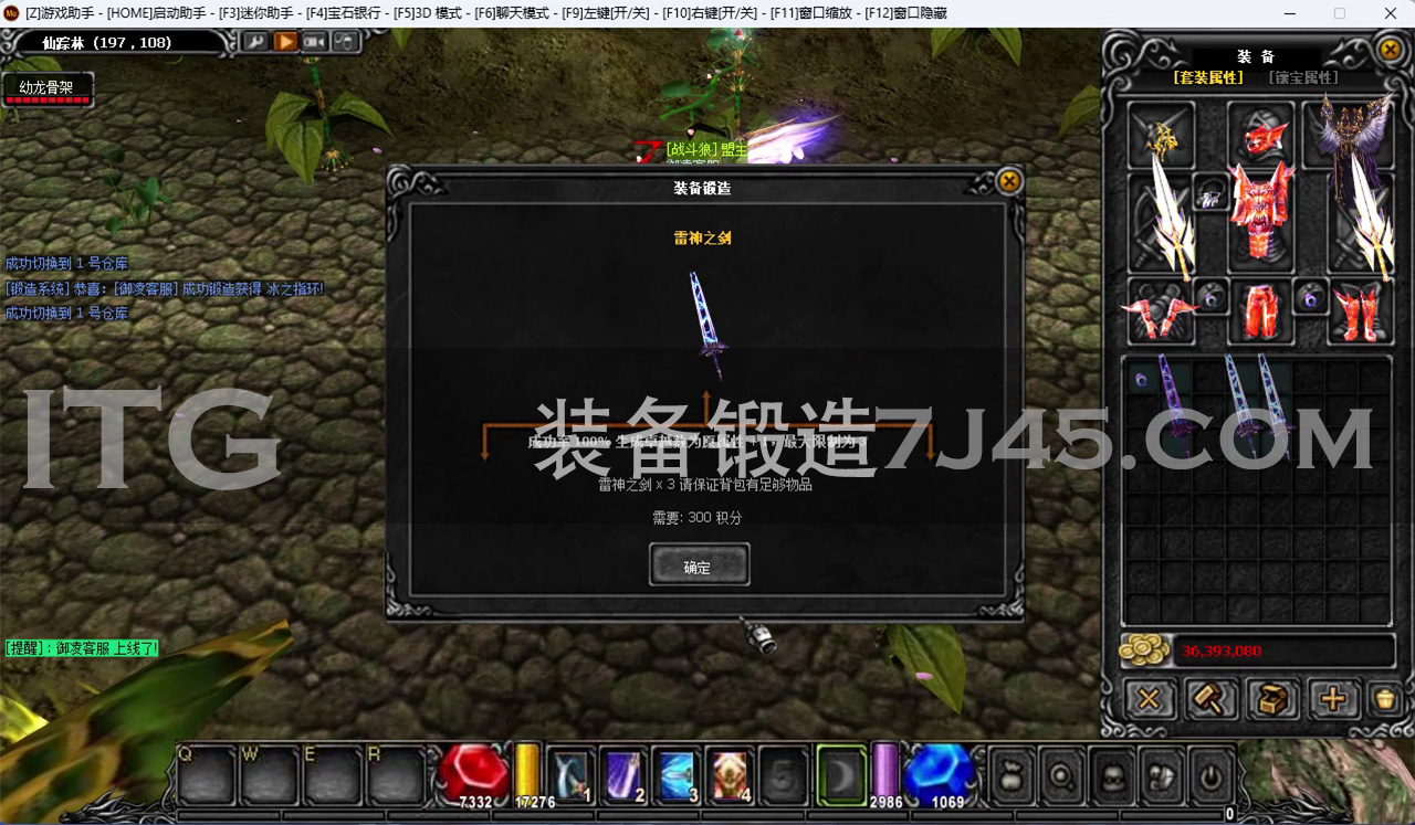 - F3 键启动,升级装备系统如设置如:A+B=C
